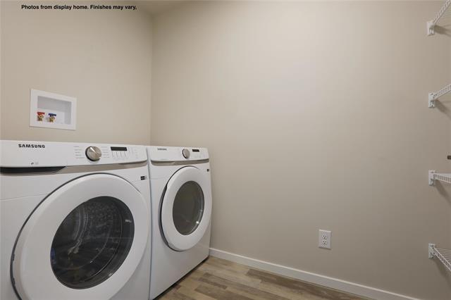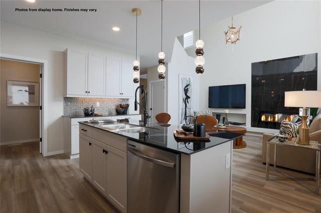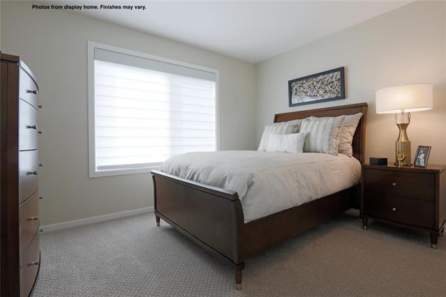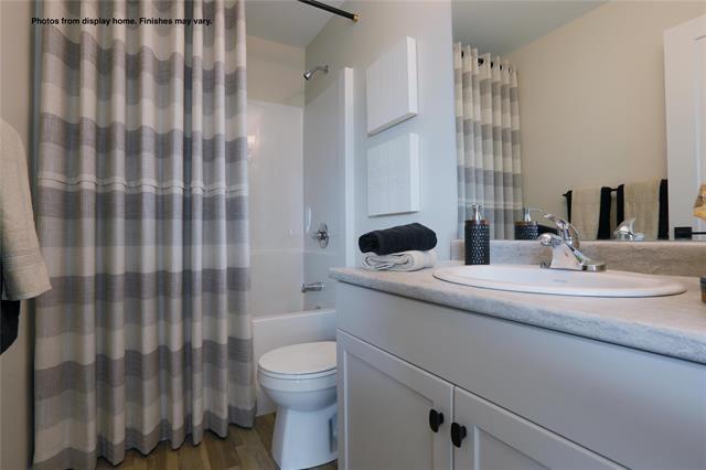 The Hazel “B” 1859 SF of living! 4 bedrooms comes with double attached garage and 3 full bathrooms. The main floor has 9 ft ceilings and the Great Room features open to above with a 17 ft ceilings plus glass inserts in staircase. & a Dining area w/garden door to your future deck. The kitchen w/large island SS dishwasher, & Soho style cabinetry 41" upper cabinets, SS Microwave OTR hoodfan, LED disc lighting in kitchen & pendant lights over the island. The main floor also features a bedroom & full bathroom. Vinyl plank flooring on the main floor except for the bedroom to be carpet. Upstairs is 3 more bedrooms & 2 full bathrooms including the Primary bedroom ensuite with shower with 1 seat, 32 oz 7lb carpet upgrade. Home is to be built with show home in another area to view by appointment. Call for more information. No escalation. Photos from display home, finishes may vary.