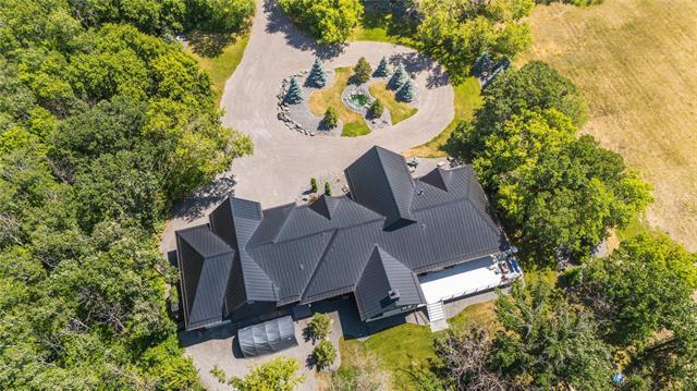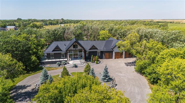 Experience luxury living in this stunning 2736 sq ft executive bungalow, perfectly nestled on a beautifully treed acreage just minutes from local amenities. Built in 2021, this exceptional home offers the perfect blend of craftsmanship, comfort, and modern convenience. Featuring 6 spacious bedrooms and 4 bathrooms, there’s room here for the whole family — and then some. Step inside to soaring ceilings, exposed timber beams, and expansive windows that flood the home with natural light while framing serene views of nature. The open-concept living space is ideal for entertaining, complete with a chef-inspired kitchen, elegant dining area, and inviting great room centered around a gorgeous feature fireplace. The primary suite offers a peaceful retreat with a spa-like ensuite and generous walk-in closet. A fully developed lower level provides even more living space with additional bedrooms, bathrooms, and room for recreation or hobbies. Outside, the private, park-like setting is a true escape, with mature trees, manicured grounds, and ample space for outdoor enjoyment. This is a rare opportunity to enjoy acreage living without gravel & sacrificing proximity to schools, shopping, and everyday conveniences.