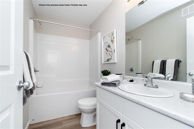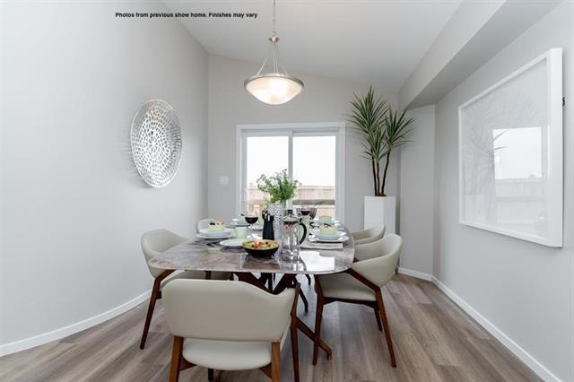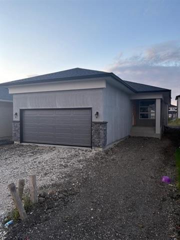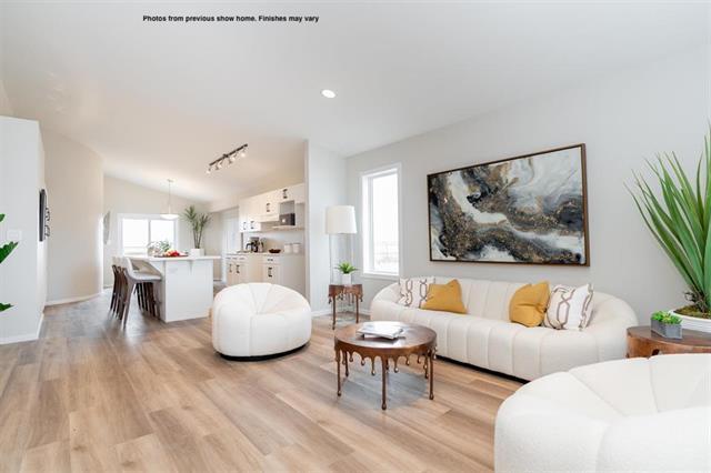 Brand new bungalow available for quick possession in Prairie Pointe with separate entry to lower level. The Sophia plan by Hilton Homes offers 3 bedrooms, 2 full bathrooms & double attached garage with open concept living and large windows & tons of natural light. You are greeted by a large covered front porch, Luxury Vinyl Plank flooring on the main floor & the bedrooms have carpet, 9' ceilings & vaulted ceilings in the kitchen, dining room & primary bedroom. The main floor also offers stackable laundry room, large island in the kitchen with quartz countertops & sliding patio door to the rear yard. Lower level has 9' foundation walls, additional hook ups for 2nd set of laundry, 200 Amp panel. Photos from previous show home, finishes may vary.