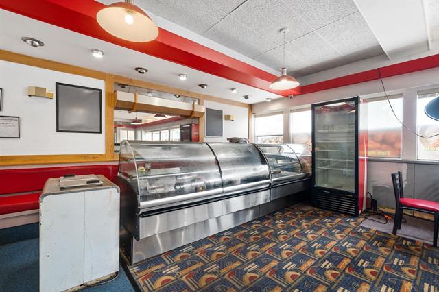 Fantastic opportunity to own a well-established restaurant in a prime high-traffic location with excellent street exposure on the corner of Main Street and Matheson Avenue. Total lot area is 9037 sq.ft. +/- jogs. (capable of a future commercial development) and building area is 1562 sq.ft. +/- jogs. plus a full usable basement. This fully operational establishment seats over 50 patrons. The property features a fully equipped commercial kitchen, a pizza-making station, and 16 on-site parking stalls.