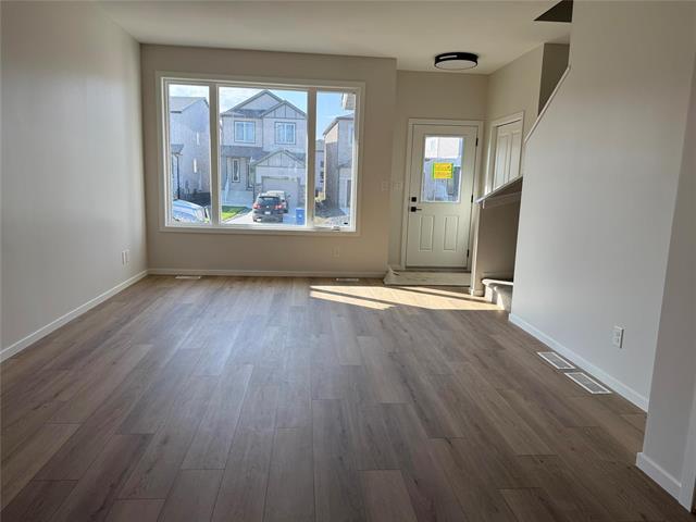 Exciting new floor plan available for quick possession in Prairie Pointe! Features an open main floor layout with 9' ceilings, vinyl plank flooring throughout and separate side entry to basement. The L-Shaped Kitchen has a central island, quartz counter tops, pantry and a window above the sink overlooking the rear yard. From the back yard you enter into a main floor laundry mud room. The second floor has 3 bedrooms, 2 bathrooms and a walk-in closet in the primary bedroom. The rear yard has a double concrete parking pad. Show home of same floor plan available to be viewed by appointment.