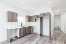 Welcome to this 1639 sq.ft . duplex- style home featuring a total of 5 bedrooms and 3 full bathrooms with separate utilities. The main floor offers an open- concept layout with a custom kitchen, quartz countertops, ample storage and a spacious living room with large windows. The main floor also includes a laundry, a primary bedroom with a walk- in closet and ensuite, as well as two additional generous-sized bedrooms and 4-piece common bathroom. Furthermore the basement level is the secondary suite with two bedrooms, a 4-piece bath, custom kitchen, living area, and storage/mechanical/laundry area. Quality finishes and upgrades throughout the home include vinyl plank flooring, quartz countertops, black trim, high efficiency windows and doors, built on piles, HE furnace, HRV system, and a 60- gallon hot water tank. Total monthly rent: $3200 + utilities.