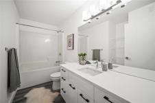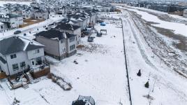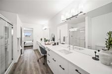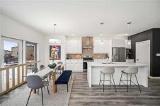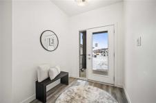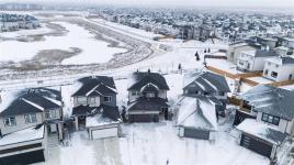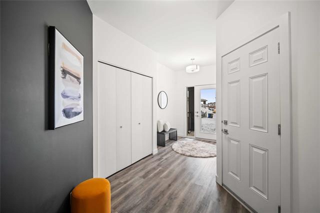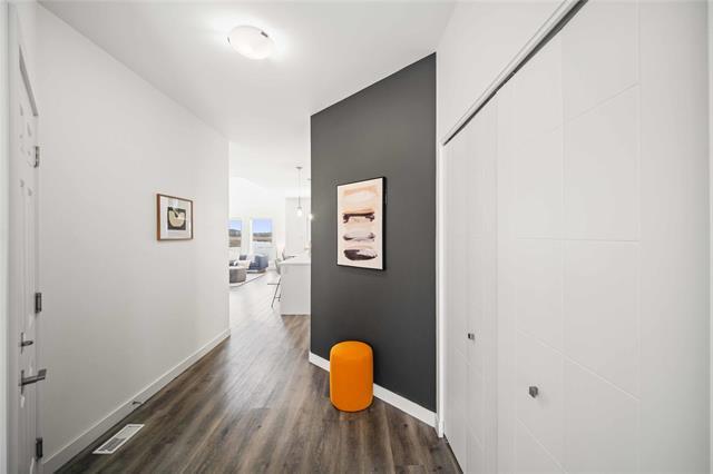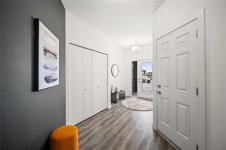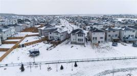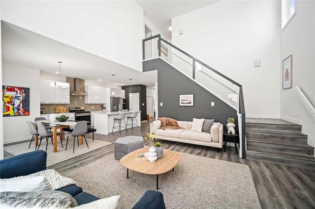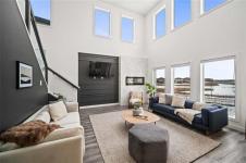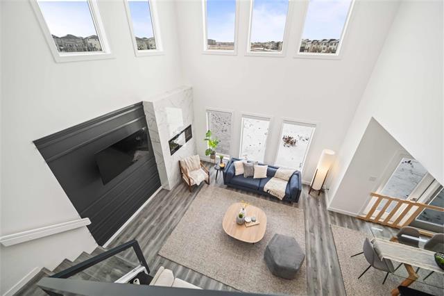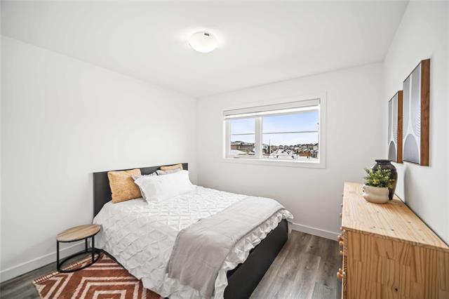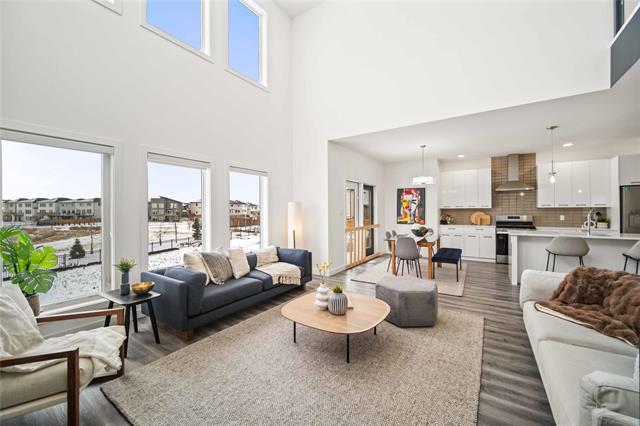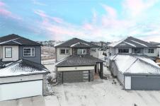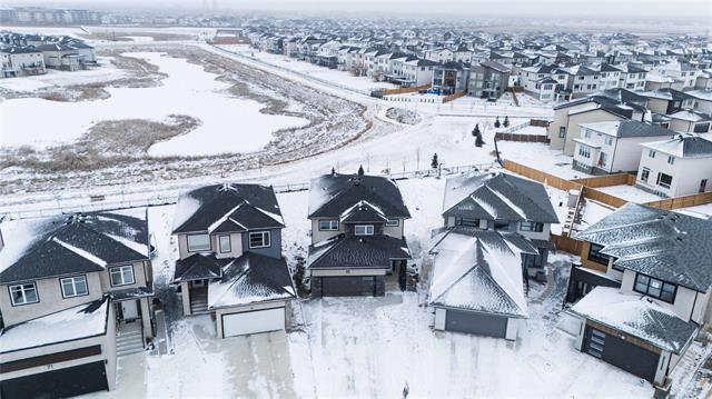 Offers as received. OPEN HOUSE SUNDAY DECEMBER 14 2:00-4:00PM. Incredible value and rarely available 2,018 sf 2-storey backing onto the like and situated on a HUGE pie shaped lot in Prairie Pointe. This home has an open concept great room plan with a large front entrance the leads into the eat-in kitchen that has tons of white cabinetry with a large island, quartz countertops, stainless steel appliances w/gas range, backsplash and pantry. The adjoining family room has 2-storey ceiling height with TONS of windows as well as an electric fireplace. There is a large 4th bedroom on the main floor that is perfect for family or guests and is complete with a full bathroom on the main floor. Upstairs there are 3 large bedrooms with the primary having lake views with a large walk-in closet and dlx ensuite bathroom. Downstairs the basement is fully finished with large look-out windows and lots of space to make this rec-room your own. This home is loaded with upgrades and unbeatable value in the neighborhood.