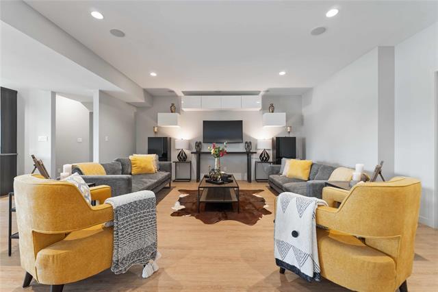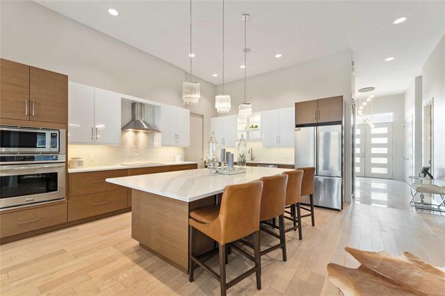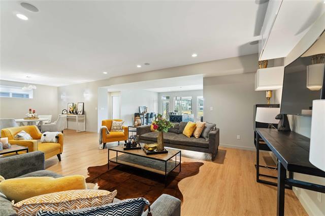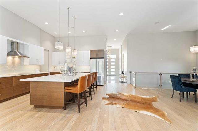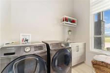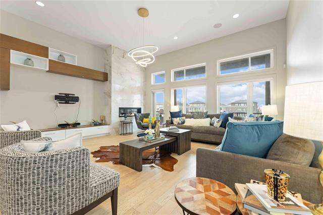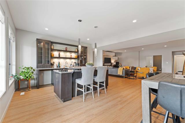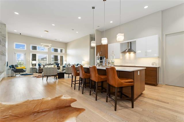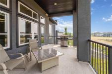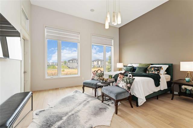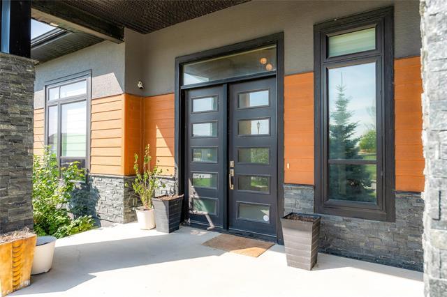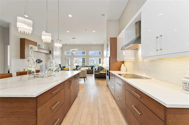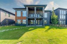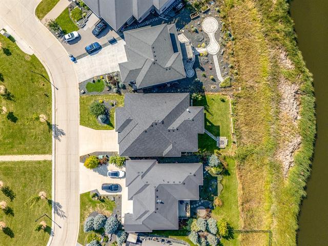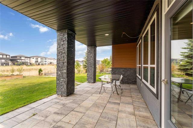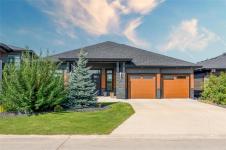 Bridgwater Trails - Rarely available, this custom-built Lake Front Bungalow on Rose Lake Court is a stunning blend of luxury and thoughtful design. 2,414 sqft on the main floor plus a fully developed 2,100 sqft walkout basement, this home is built for comfortable living and entertaining. Soaring 9’ & 12’ ceilings, extra soundproofing, and triple-pane windows create an elegant and tranquil space. With three bedrooms on the main floor and two more in the lower level, plus FOUR ensuites, it’s perfect for large families. There is a second kitchenette area in the basement, with a structural wood floor system, that offers in-floor heating & cooling and engineered floor joists. Luxury touches like glass railings, quartz counters, maple cabinetry, heated floors and soft-close drawers elevate every detail. Main floor laundry and ample storage. Kitchen features pendant lighting & a walk-in pantry. Garage is insulated and a Triple (Tandem), ready for your Electric EV charger (pre-wired). Appliances, blinds, TV brackets & TV all remain. Exterior is Hardi Siding/Cultured stone & Acrylic stucco. 20x10 covered Deck (with 2 access points) + Gas line for BBQ & lower level patio. Possession Spring 2026.