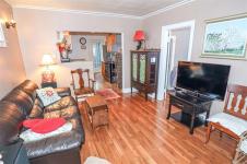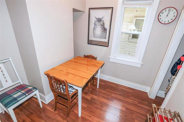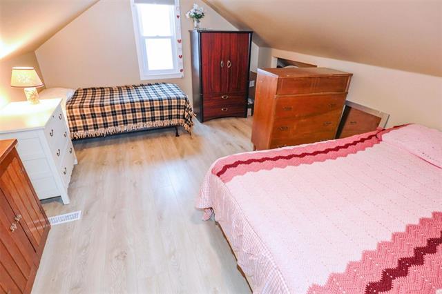 Well-maintained and adorable 777 sq ft turnkey 1½-storey 3 bedroom home situated on a quiet block with a deep lot featuring newer trees, shrubs, and a garden area, plus an oversized single garage. The main floor offers a spacious living room open to the kitchen—perfect for entertaining. A huge upper loft provides flexible space, complemented by an upgraded 4-piece bathroom with tiled flooring. Numerous updates include house shingles (2017), garage shingles (2023), high-efficiency furnace, updated plumbing, insulation, sump pump (2022), flooring, a newer overhead garage door, and fresh paint. Low-maintenance exterior with aluminum soffits and fascia, central A/C, and appliances included. Won’t last!