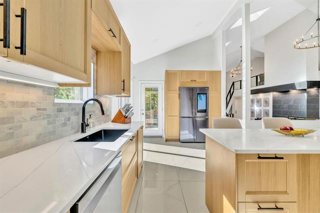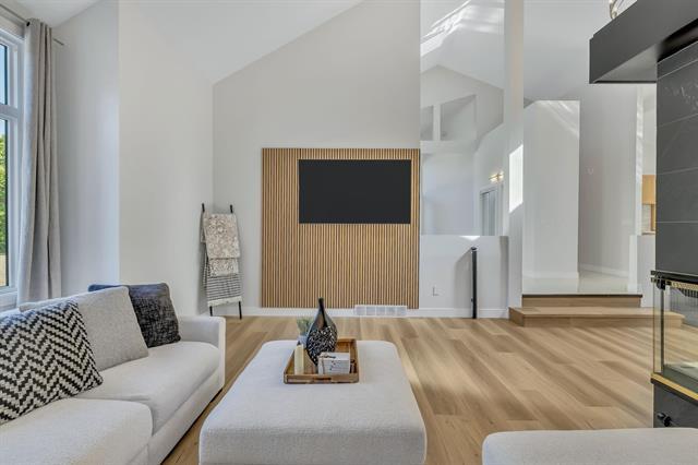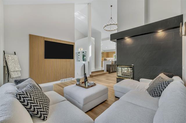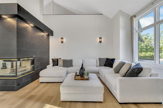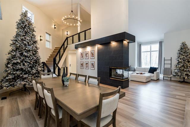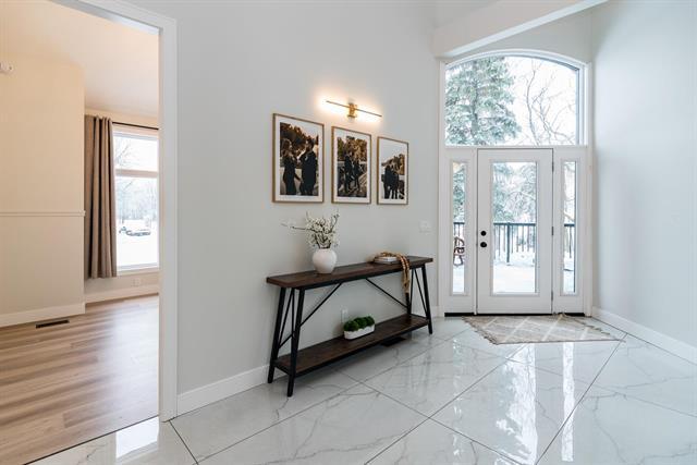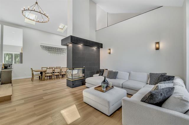 OPEN HOUSE SAT & SUN 2-4PM. Welcome to 14 Kingswood Crescent. A breathtaking, fully remodeled 3,875 sq ft two-storey home set on a private 1.3-acre lot with spectacular river views, directly across from Kingswood Golf Course. This remarkable 5-bed, 4-bath home seamlessly combines timeless elegance with refined modern luxury. The main level captivates with soaring 20' vaulted ceilings & a stunning double-sided Italian tile gas FP. New LVP & ceramic tile carry throughout the home complimenting the chef-inspired kitchen featuring brand new white oak soft-close cabinetry, quartz countertops, upgraded lighting & premium appliances. The fully finished walkout basement is designed for entertainment, offering spacious rec-room ideal for hosting Jets game's or playoff football & built in GOLF simulator for year-round entertainment. Unwind to the spa-like 6-pce ensuite with heated tile floors, a walk-in double shower, jacuzzi tub, double vanity & smart toilet. Additional features include a triple attached heated & insulated garage, Hardie board siding, & new shingles (2017). Every detail has been thoughtfully curated in this move in ready masterpiece. An opportunity to enjoy luxury living in a premier location.