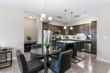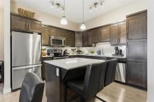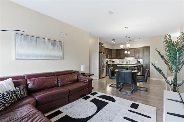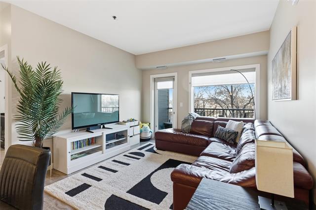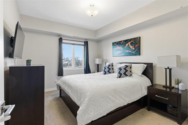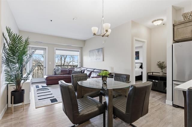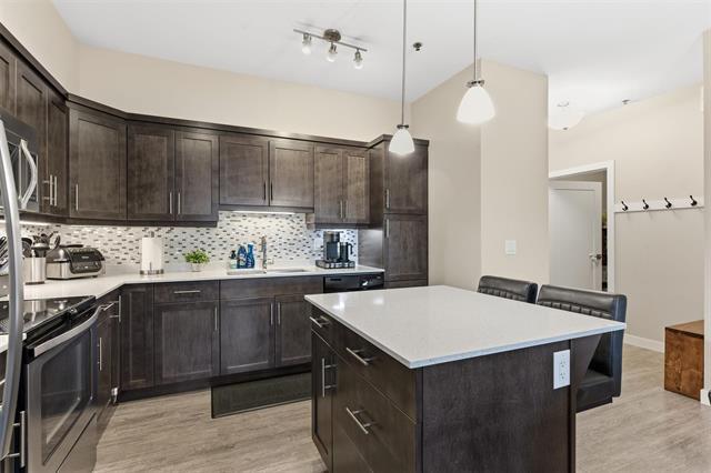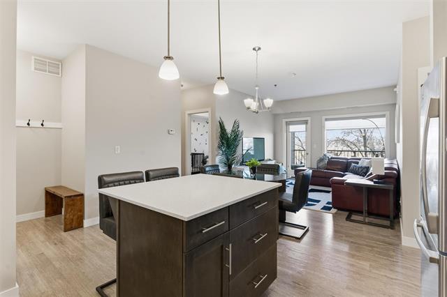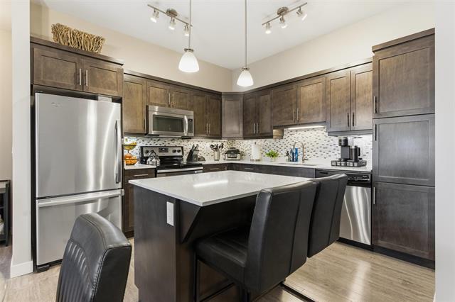 Offers as received. Welcome to Unit 313 at The Station Melrose. This 3rd floor, street-facing condo offers the ideal opportunity to step into home ownership or comfortably downsize without sacrificing modern style or convenience. Spanning 993 sq ft, this thoughtfully designed unit features 2 generously sized bedrooms, 2 full bathrooms, and an inviting open-concept layout—perfect for unwinding after a long day. The primary bedroom includes a walk-through closet leading to a 3-piece ensuite, while the 2nd bedroom offers flexibility as a guest room, home office, or additional living space, conveniently located beside the 4-piece main bath. The eat-in kitchen is well appointed w/island, quartz countertops, tile backsplash, & ss appliances, seamlessly flowing into the combined living & dining area. Step outside to your private balcony overlooking a quiet residential street—an ideal spot to relax with a coffee. Additional features include in-suite laundry w/storage, 1 secure underground parking stall, elevator access, bright & well-maintained common areas, and a pet-friendly building. A modern, well-located condo that checks all the boxes. Contact for more information or to schedule your private showing.