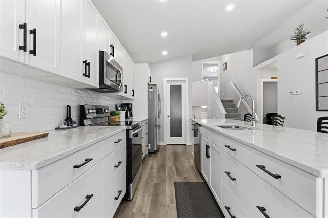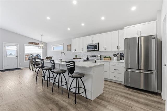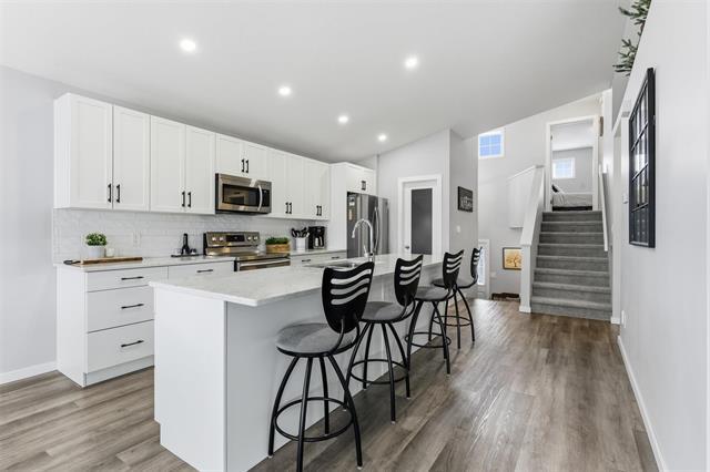 S/S now, OTP January 27th @7PM. Why wait to build? This nearly-new home is waiting! Offering the perfect combination of a newer build in a sought-after area with everything finished for you! Extras & upgrades are found throughout this wonderful family home. Spacious kitchen with white cabinetry, extra large island, quartz counters, tile backsplash, walk-in pantry & stainless steel appliances included. Vinyl plank flooring runs throughout the main level rooms for great flow & the vaulted ceilings add to the feeling of openness & space. The Great Room offers a built-in entertainment area, large window with custom blinds & plenty of space for all your furniture. The dining area is equally as spacious, perfect for entertaining & offers access to the rear deck & yard. Two good sized bedrooms plus 4 pc bath on the main level, while upstairs is the private Primary Bedroom oasis with walk-in closet & 3 pc ensuite. The lower level is also fully finished (with permits) & offers two more bedrooms, a 4 pc bath, laundry & amazing storage. Outside you will find a fully fenced & landscaped yard with stunning composite deck with privacy panels, plus a newer shed for outside storage needs. Don't wait, call today!
