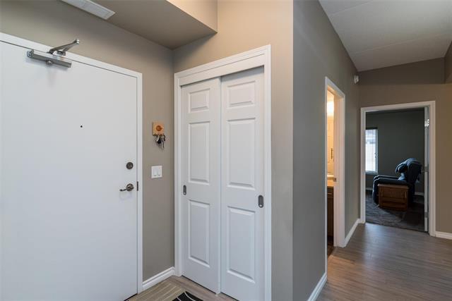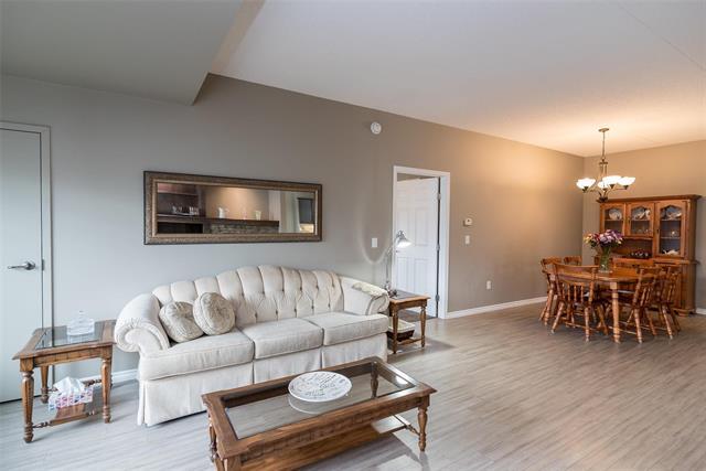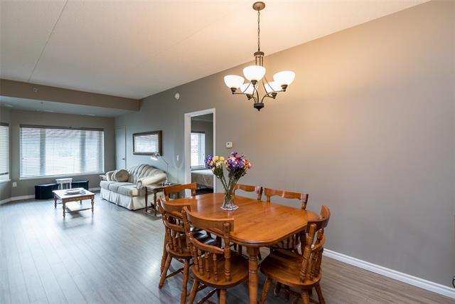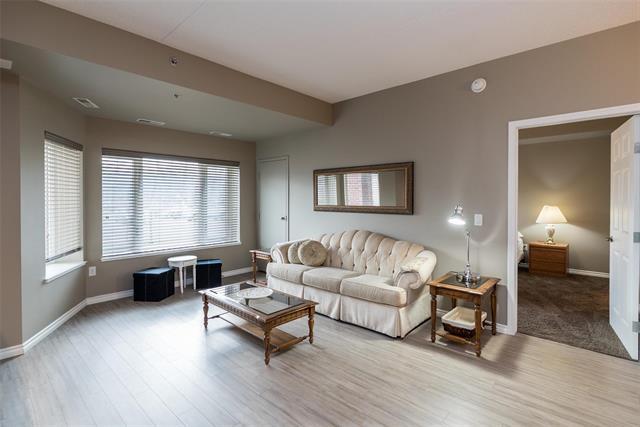 Bright & spacious end-unit in the sought-after Stonecrest complex in Linden Woods built with concrete and steel beam construction. With over 1,400 sq ft, 9' ceilings, and lots of storage, this former show suite has many upgrades & features an inviting layout and great natural light. The island kitchen offers caesarstone counters and maple cabinetry, opening to a warm living area with laminate flooring and a built-in entertainment center with a gas fireplace. Spacious dining room. Handy desk area/office off the kitchen eating area. 2 good size bedrooms, including a generous primary suite with a walk-in closet and dual-sink vanity. Dedicated in suite laundry room. The wrap around balcony is large! The LARGE underground parking stall is a real plus and is located right BELOW the condo itself accessible by taking the nearby stairwell & one outdoor parking stall ALSO included. TWO storage lockers are a HUGE bonus as well !! Stonecrest provides excellent amenities: guest suite, party room, library, gym, games room, carwash, and workshop. On site property manager. A great community, a very well-kept building in a fantastic location, move-in ready and easy to love. Enjoy the convenience of main floor living!