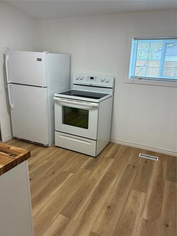 Showings Start now. Offers presented as received. BUILD EQUITY! Why pay rent? You can own this super cute & recently renovated bungalow located mid-block on a family oriented street. When you enter the front door you will be impressed on how bright the living room/dining room are. Large windows flood the rooms with natural light. The eat-in kitchen has plenty of counter space with new butcher block counter, fridge & stove included. Remodelled 4 piece bathroom with character claw tub & shower. Other features of this cute home are: new shingles, freshly painted inside & out, new luxury vinyl plank floor throughout, washer/dryer included, new fence & parking pad in the back that will accommodate up to 3 vehicles. You will also enjoy the cute front porch for having your coffee and/or reading a good book. Nothing to do, just move in!