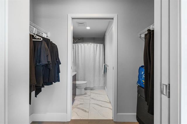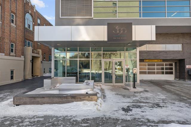 The amenities elevate this from a condo to a lifestyle. A breathtaking 2,364-square-foot landscaped terrace overlooks the river, perfect for entertaining or unwinding. Residents enjoy a beautifully designed lounge with fireplace and pool table, a fully equipped fitness studio, and an impressive two-storey lobby that sets the tone the moment you walk in. Heated above-grade parking, a guest suite, and a private illuminated pathway directly to the riverwalk complete the experience.