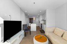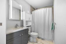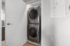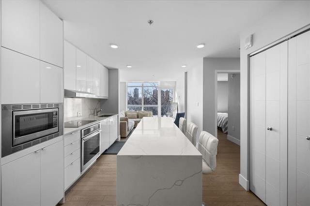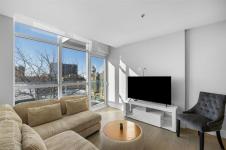 Welcome to the pulse of downtown. This modern 2-bedroom, 1-bath condo delivers 684 square feet of sleek, intelligently designed living just steps from the riverwalk, arena, award-winning restaurants, and the city’s best nightlife. Every detail feels intentional: quartz countertops, clean-lined cabinetry, under-mount sinks, and premium integrated Jenn-Air and Fisher & Paykel appliances create a space that feels sophisticated, fresh, and effortless. The open-concept layout is flooded with natural light, complete with in-suite laundry and a generous walk-in closet, offering both comfort and style in one refined urban retreat.