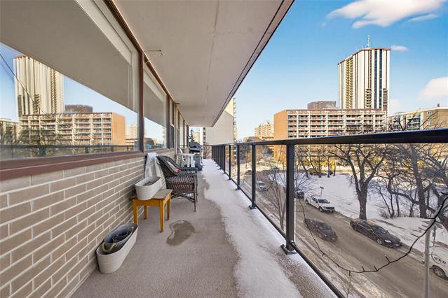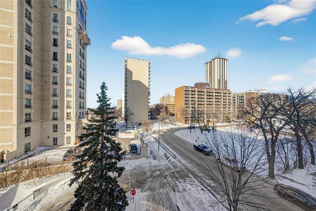 Enjoy condo living in this affordable, bright and spacious 4th floor unit on Wellington Crescent. This quiet concrete and steel building keeps noise to a minimum and the 24 hour door person means you will never miss an Amazon delivery. Inside, you will find 2 bedrooms with a walk in closet in the primary, a modern, clean renovated bathroom, and an open concept living and dining area with oversized windows and treetop views. Step outside to a massive 47 foot balcony with upgraded membrane and glass from 2014, offering east facing sky line views. The building offers a main floor gym to help you stay active, heated underground parking, and a large secured 6x8 storage locker. Cable TV is included, and residents can enjoy a shared picnic area with BBQ overlooking the river, perfect for summer evenings with friends. Recent upgrades include the roof, lobby and gym in 2015 and the parking membrane in 2016. The location is incredible. Walk to Osborne Village, Corydon Village, and new hot spots like Baby Baby, Shirley's, and great coffee at Thom Bargen. With endless restaurants, boutiques and nightlife at your doorstep, this centrally located condo is the perfect place to call home. Pls note: no pets allowed.