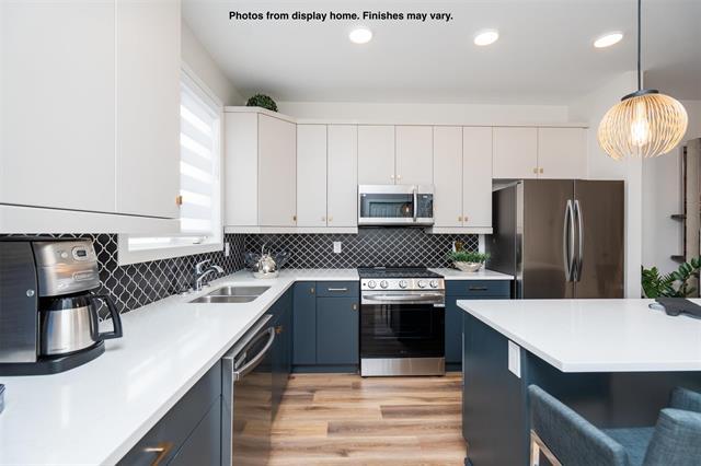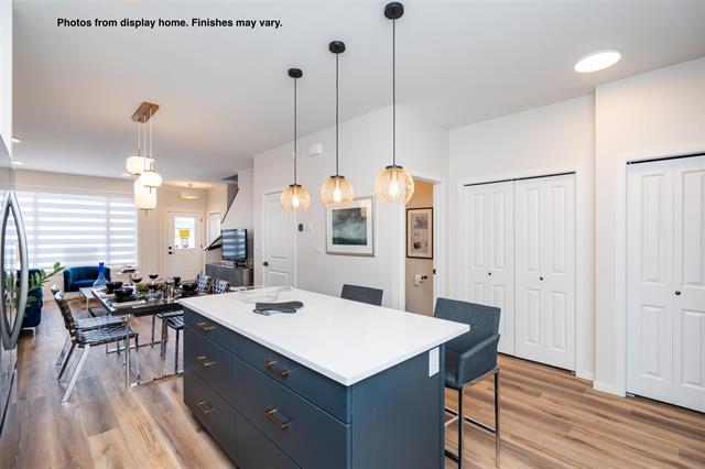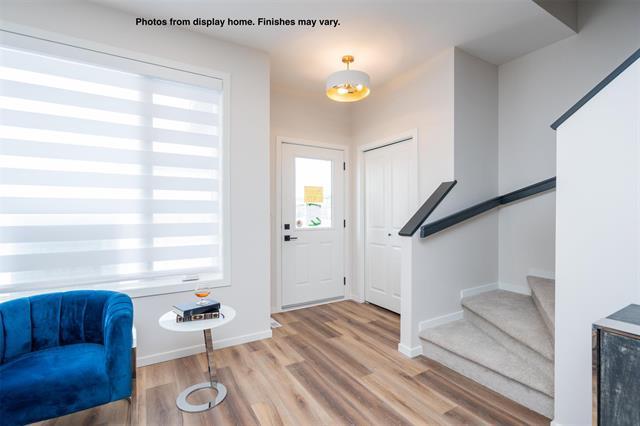 Exciting floor plan to be built in Prairie Pointe! Features an open main floor layout with 9' ceilings, vinyl plank flooring throughout and separate side entry to basement. The L-Shaped Kitchen has a central island, quartz counter tops, pantry and a window above the sink overlooking the rear yard. From the back yard you enter into a main floor laundry mud room. The second floor has 3 bedrooms, 2 bathrooms and a walk-in closet in the primary bedroom. The rear yard has a double concrete parking pad. Home of same floor plan available to be viewed by appointment until February 20th. Note: Designer has chosen both interior and exterior colours.