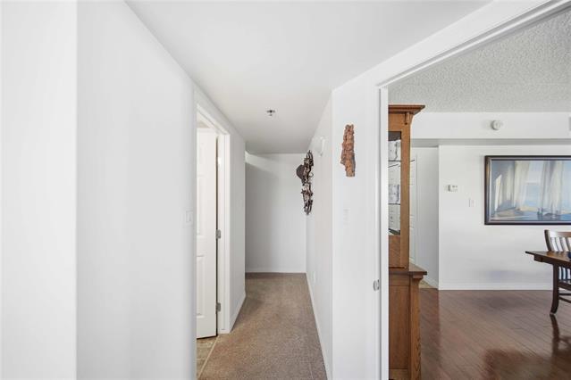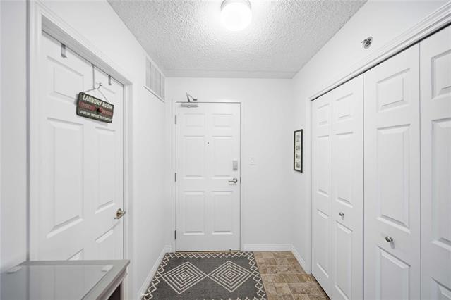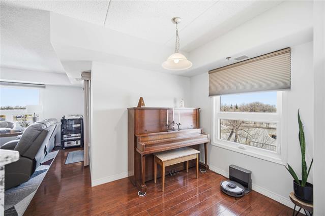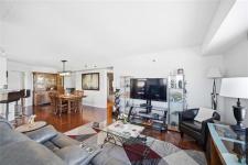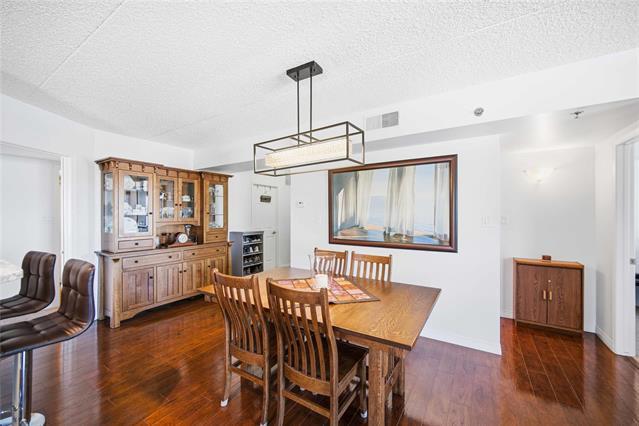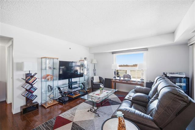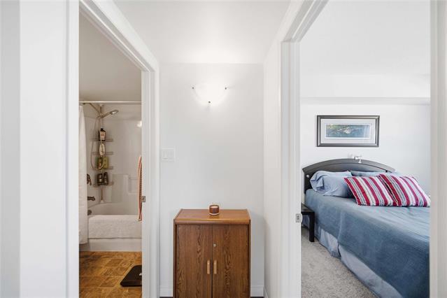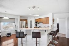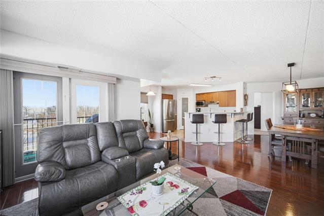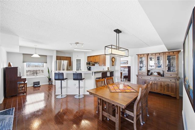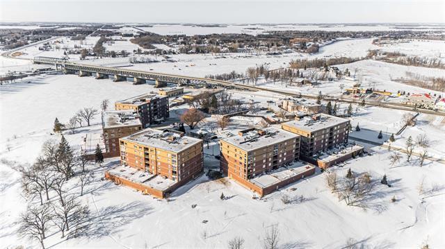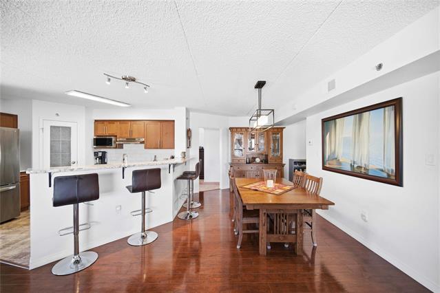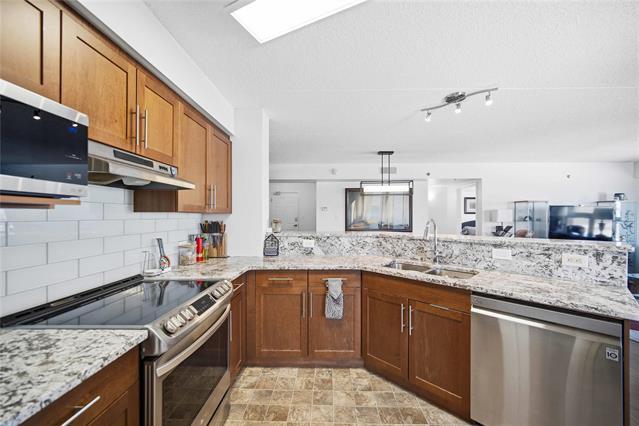 Offers as received. Rarely available 1,320 sf unit with beautiful views of the creek and mature trees as well as being steps away from half moon the best the Lockport has to offer. This unit has a completely open concept layout with beautiful laminate floors and is loaded with big bright windows. The kitchen has maple cabinetry with a large peninsula, granite countertops, stainless steel appliances and backsplash. The adjoining family room is spacious in size with lots of room for entertaining and has direct access out to a large balcony. This unit has 2 bedrooms and 2 full baths with the primary having lots of room for a king size bed and a large walk-in closet. The unit also has in suite laundry and comes with 2 parking spots. Condo fees include all utilities.