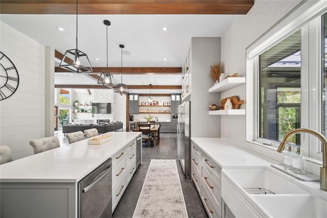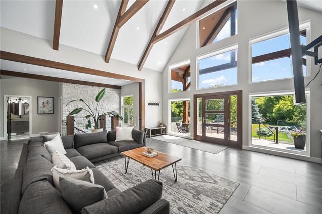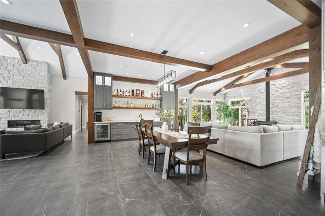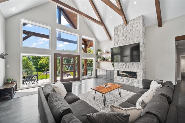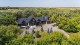 Experience luxury living in this stunning 2736 sq ft executive bungalow, perfectly nestled on a beautifully treed acreage just minutes from local amenities. Built in 2021, this exceptional home offers the perfect blend of craftsmanship, comfort, and modern convenience. Featuring 6 spacious bedrooms and 4 bathrooms, there’s room here for the whole family — and then some. Step inside to soaring ceilings, exposed timber beams, and expansive windows that flood the home with natural light while framing serene views of nature. The open-concept living space is ideal for entertaining, complete with a chef-inspired kitchen, elegant dining area, and inviting great room centered around a gorgeous feature fireplace. The primary suite offers a peaceful retreat with a spa-like ensuite and generous walk-in closet. A fully developed lower level provides even more living space with additional bedrooms, bathrooms, and room for recreation or hobbies. Outside, the private, park-like setting is a true escape, with mature trees, manicured grounds, and ample space for outdoor enjoyment. This is a rare opportunity to enjoy acreage living without gravel & sacrificing proximity to schools, shopping, and everyday conveniences.