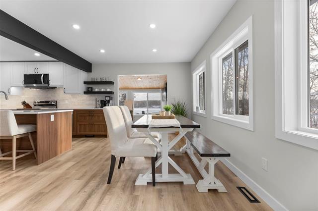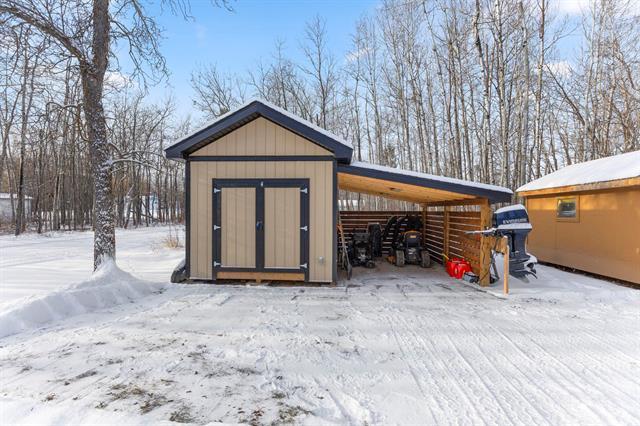 Where luxury meets comfort, welcome to this stunning waterfront home situated on a large treed lot located in the RM of Lac Du Bonnet. This turn-key 2 bedroom, one bathroom 4 season home is perfect for first-time home buyers, or retirees looking for a slower pace of life. The impressive updated kitchen with custom cabinets and quartz countertops provides an amazing space for entertaining and hosting dinner parties. The cozy living space is perfect for snuggling up and enjoying the beautiful waterfront view. The full bathroom on the main floor is completely updated, with beautiful tiles and a custom vanity. Heading upstairs, you are met by an elegant loft style primary bedroom. Waterfront access, with your own private dock makes boating in the summer or ice fishing in the winter an outdoor enthusiasts dream. Plenty of upgrades including new shingles 24’, new appliances 25’, new furnace and A/C 25’, new windows 25’, new hot water tank 25’, 200 AMP panel 25’, sound proofed interior walls and ceiling 25’, poly/spray foamed crawlspace 25’. Insulated shed with electrical 25’. Nothing left to do here but move in and enjoy!!!