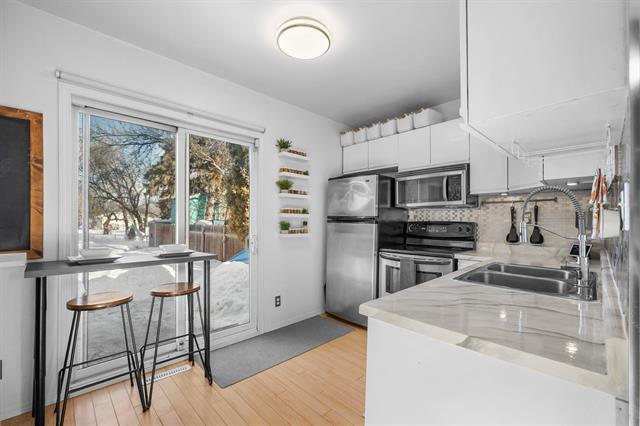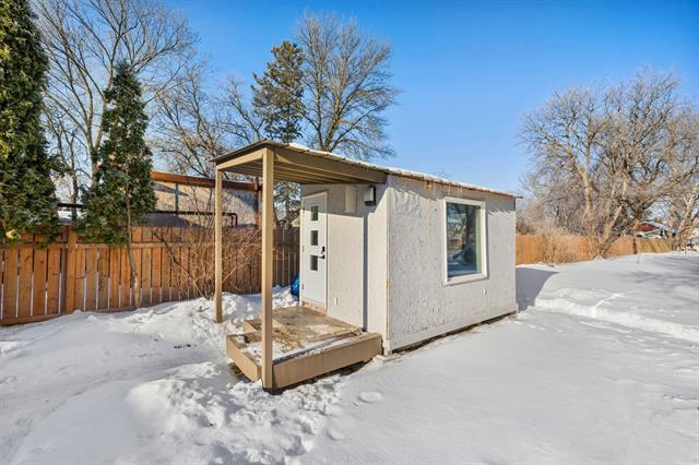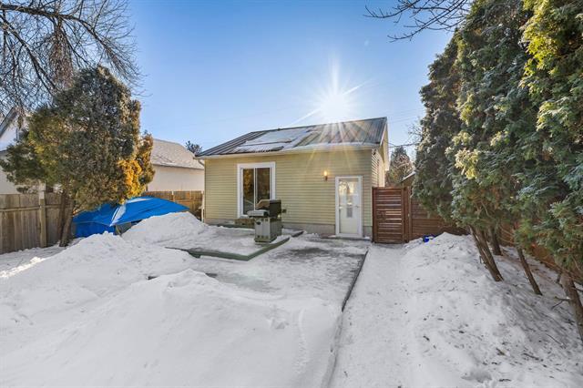 OTP 2/22. Where to begin?! So much to offer in this cute home. Great curb appeal draws you in past the spacious trendy front porch into the light soaked front room with big picture window. Updated lighting and storage enhance the function of this room. Laminate flooring flows through the front primary and secondary bedrooms. A good sized kitchen with ample storage provides direct access to your back deck through the glass sliders illuminating the kitchen. The finished basement was thoughtfully curated moving the mechanicals to make room for more usable space AND a 3pc good sized bathroom (2021). BUT that's not all! An additional ~96sf of heated living space awaits in the backyard! Maybe its an office space or gaming area for the kids, either way you will love it! In a safe friendly neighbourhood this bungalow is conveniently located close to amenities and walking distance to a K-8 school. HEF & AC 2020, Metal roof 2020.