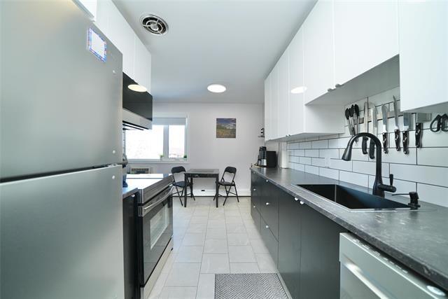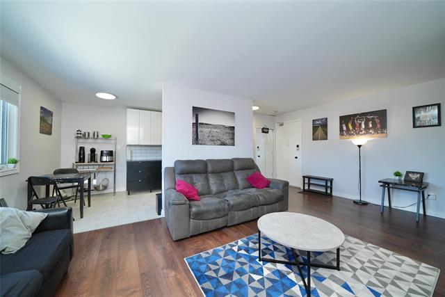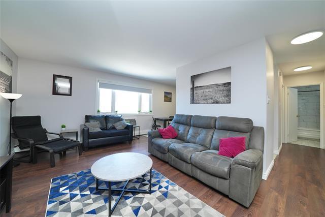 Beautifully updated top floor corner unit. Updated windows, paint, flooring, kitchen cabinets, Stainless Steel appliances, backsplash, ceramic tile leading through kitchen, hallway and into bathroom. New tile Tub-surround, dual flush toilet, vanity and lighting, Large bedroom with double closet, In-suite storage room with deep freeze. Unit was professionally renovated November 2024. Quiet building with concrete floor and wall construction. Water, heat, electricity and parking all included in condo fees! Offered fully furnished as a turn-key move in ready home. Call your realtor and book your viewing today! Priced to sell quickly!